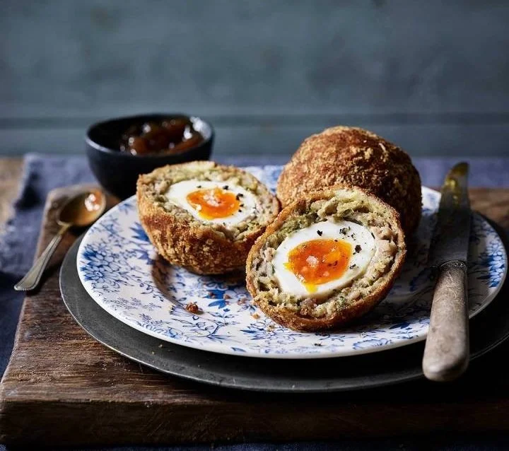 The Scottish classic. A soft-boiled egg covered in sausage meat and coated in crunchy breadcrumbs.